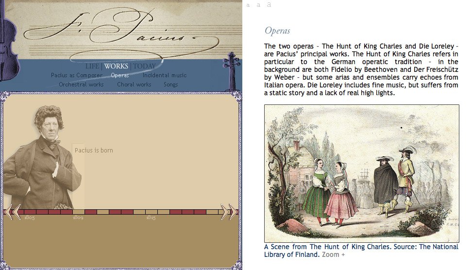 • Internet-sivusto (online), tilaaja Pacius 200 juhlavuoden toimikunta 2009.